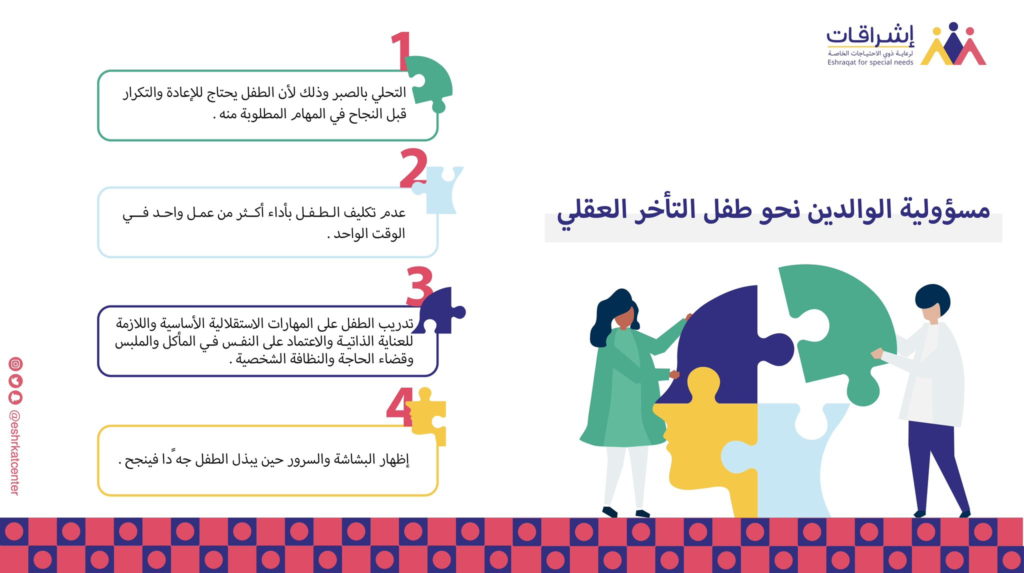 1 فكرة عن “مركز إشراقات – مسؤولية الوالدين نجو طفل التأخر العقلي”