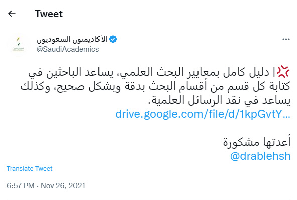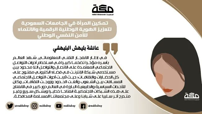 منشــورات الصــحافة تمكين المرأة في الجامعات السعودية لتعزيز الهوية الوطنية الرقمية والانتماء للأمن النفسي الوطني مقالة صحفية نشرت في صحيفة مكة أُنقر هنا هل تريد التعمق فيما يخص البحث العلمي للوصول إلى الاحتراف؟ مشاركة للدكتورة في موقع رواق أُنقر هنا مقال التعليم المدمج مقالة صحفية نشرت نشر في صحيفة خبر عاجل أُنقر هنا مقال الاستثمار في التكنولوجيا والأمن السيبراني مقال للدكتورة منشور في صحيفة مال أُنقر هنا مقال دليل كامل بمعايير البحث العلمي، يساعد الباحثين في كتابة كل قسم من أقسام البحث بدقة وبشكل صحيح، وكذلك يساعد في نقد الرسائل العلمية مقال منشور في الاكاديميون السعوديون أُنقر هنا